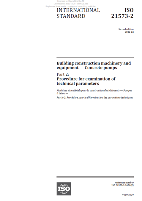 據了解,國際標準ISO 21573-2用于規定混凝土泵關鍵技術參數的測試方法,是評價設備重量、外廓尺寸是否滿足法規要求,以及能耗、效率、安全等關鍵性能優劣的重要依據。隨著社會的不斷發展以及技術的進步,現行的國際標準ISO 21573-2已經無法滿足要求。