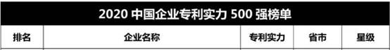 2020中國(guó)企業(yè)專利實(shí)力500強(qiáng)榜單通過(guò)5個(gè)企業(yè)專利實(shí)力指標(biāo)作出評(píng)價(jià)排名,5個(gè)指標(biāo)包括平均專利價(jià)值、有效發(fā)明專利和實(shí)用新型專利總數(shù)、專利發(fā)明人總數(shù)、PCT申請(qǐng)總量、專利申請(qǐng)持續(xù)時(shí)間等,最終得出各個(gè)企業(yè)的專利實(shí)力分?jǐn)?shù),形成中國(guó)企業(yè)專利實(shí)力500強(qiáng)榜單。