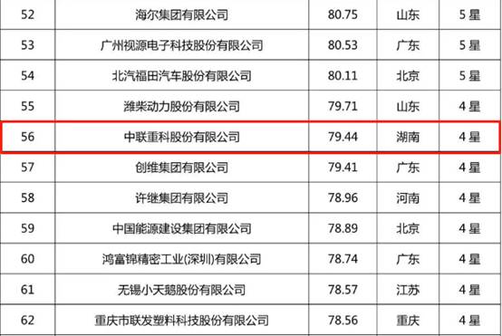 最終結(jié)果顯示,中聯(lián)重科以79.44的專利實(shí)力評(píng)分獲得總榜單第56名,在上榜的裝備制造業(yè)企業(yè)中位居第1名。同時(shí)位列榜單前列的還有華為、中興、騰訊、阿里巴巴、小米科技、珠海格力等龍頭企業(yè)。