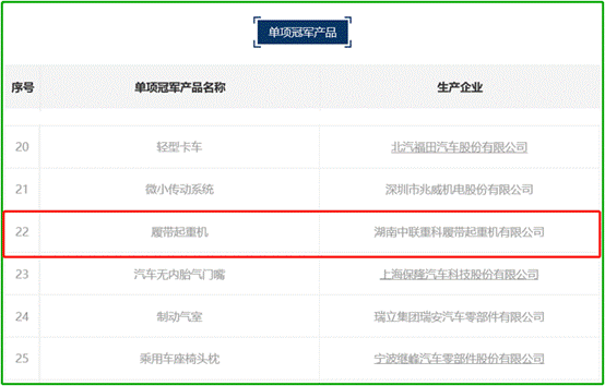憑借在履帶起重機領域的市場、技術、品牌聲譽,經專家組嚴格論證,中聯重科履帶起重機被確定為國家第五批制造業單項冠軍產品。