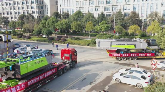 △2月18日,中聯重科開門紅當天,十余臺履帶起重機明星產品起運發往全球