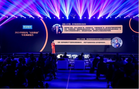 現場,瞭望智庫研究院執行院長熊湘怡正式發布了《2021中國家電“以舊換新”年度調研報告 》。《報告》指出,2021年,消費升級紅利有望進一步釋放。通過以舊換新的教育和普及,有望成為中高端家電元年。蘇寧認為,通過以舊換新,騰籠換鳥,為功能創意家電、時尚生活家電、智能健康家電等創造市場空間。