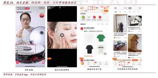 以淘寶為例,阿里正在強調內容化、社區化屬性淘寶的內容化,不是說淘寶要回過頭往社區或媒體的方向走,而是淘寶去加強內容化功能屬性,強化淘寶直播、短視頻等內容形態工具,進一步孵化培養逛逛、訂閱等內容社區,培養消費者更深度、更沉浸式的購物方式,改善用戶留存,提升用戶粘性。