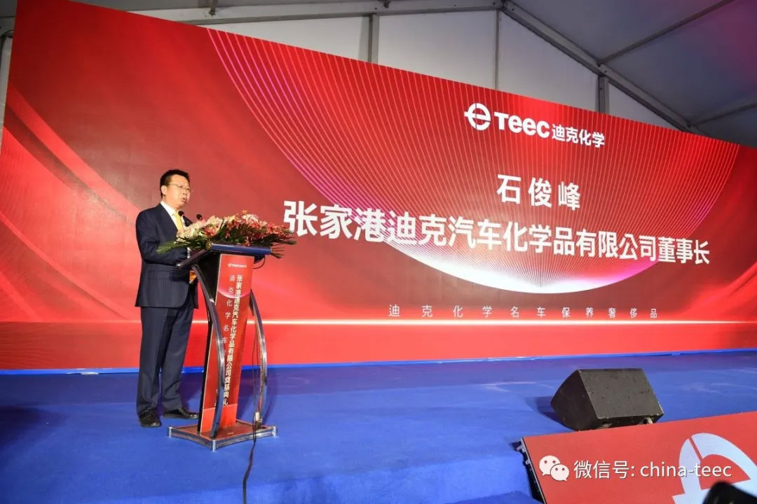 隨后韓書記致辭,韓書記表示,他代表政府向迪克化學新廠動工奠基儀式致以由衷的祝愿,希望迪克化學能夠借助增產擴能項目,在企業發展的道路上披荊斬棘,再創新高。希望在不久的將來,政府能攜手迪克化學,為張家港經濟建設做出更大的貢獻,為消費者提供更高品質的車用養護系列產品。