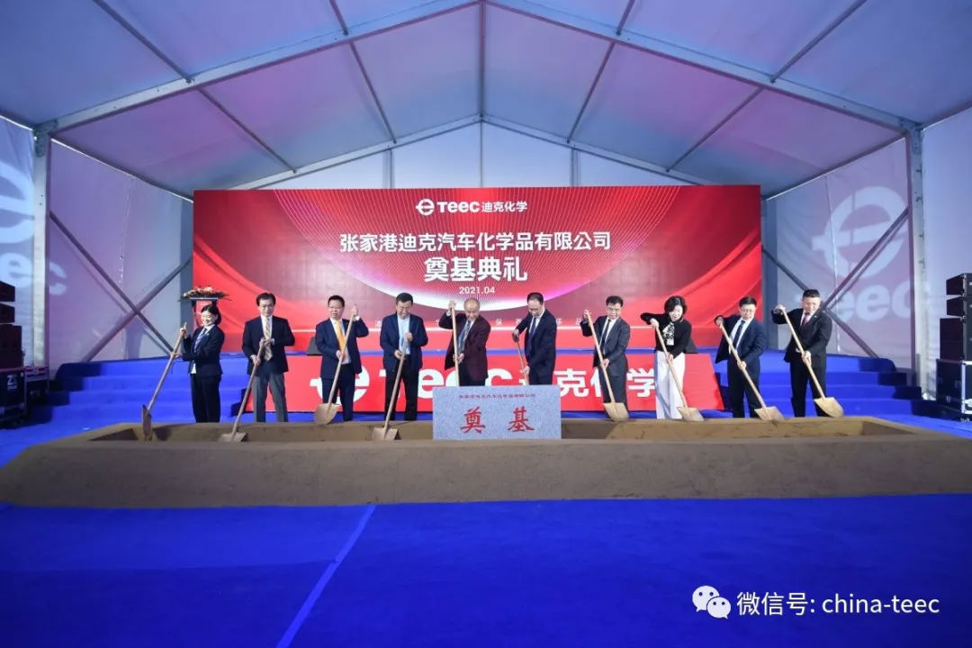 4月17日,迪克化學新工廠破土動工奠基儀式隆重舉行,張家港市委副書記、市長韓衛,保稅區黨工委副書記、管委會副主任陸崇珉、管委會副主任翁羽人、管委會副主任顧衛彬、管委會副主任劉東興、迪克化學董事長石俊峰、迪克化學董事中原世和、迪克化學副董事長王兆銀、迪克化學董事總經理錢雪芬等政府及公司領導出席了儀式。