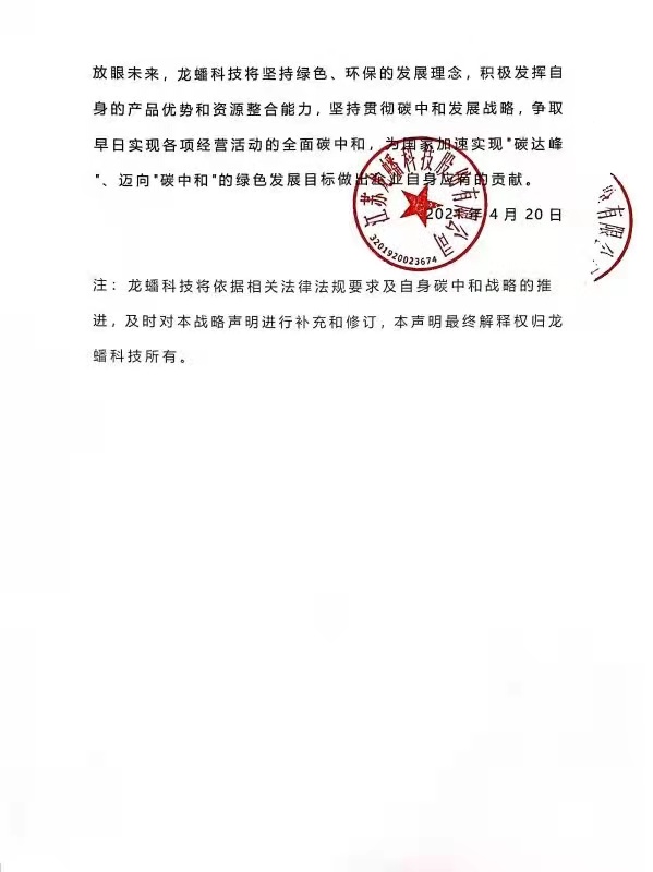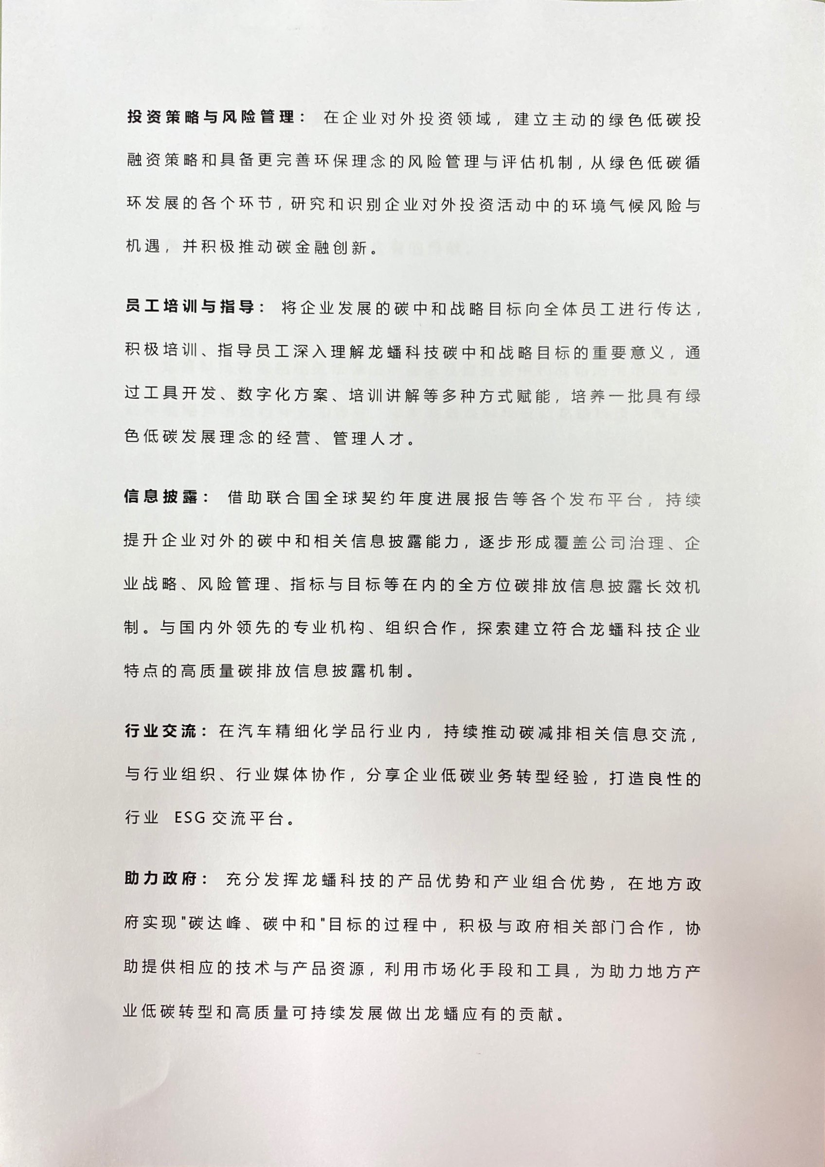 以下為“龍蟠科技碳中和戰略聲明”全文: