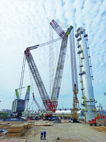 △ZCC3200NP成功助力1850噸的丙烯塔吊裝。