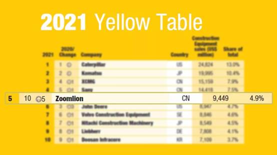 △中聯(lián)重科位列2021 Yellow Table 全球前五強