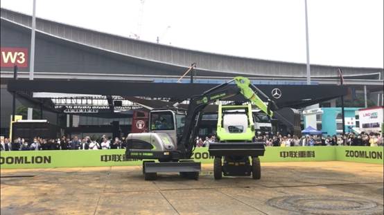 4天時間里,中聯重科室內外兩大展區迎來了眾多觀眾。“直插云霄”ZCC13000超大型履帶起重機、全球最長臂架101米泵車、作業高度達58.8米的高空作業平臺ZT58J、土方機械E-10系列新品……都贏得現場觀眾的廣泛贊譽,中聯重科展區儼然成為展會“網紅地標”。