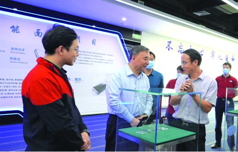 藍思科技副董事長鄭俊龍向宋志平會長介紹公司產品