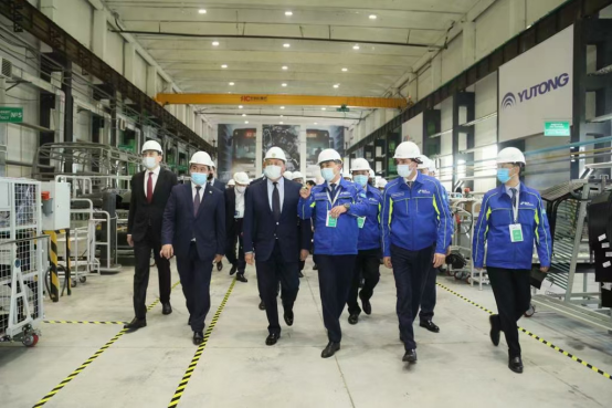 開工儀式后,哈薩克斯坦總理馬明及政府代表團來到工廠實地參觀了各制造車間及檢測線等。馬明表示,“汽車制造業是哈薩克斯坦最重要的機械制造業之一,與宇通客車合作的新的制造工廠成為了我們的重點項目清單之一。感謝宇通積極參加新工廠建設,以及所做的技術輸出工作。同時,他指出,宇通產品深受哈薩克斯坦當地客戶歡迎,QazTehna工廠也將成為中哈產能合作的典范。