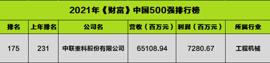 △中聯(lián)重科位列2021年度《財(cái)富》中國(guó)500強(qiáng)第175位
