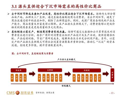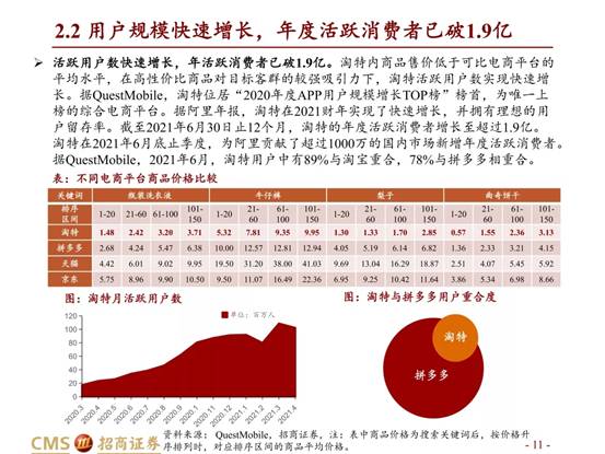 招商證券認(rèn)為,在下沉電商中,淘特性價(jià)比優(yōu)勢(shì)明顯,源頭直供模式帶來用戶的持續(xù)高增長(zhǎng),將引領(lǐng)下沉電商擺脫價(jià)格戰(zhàn)轉(zhuǎn)向價(jià)值戰(zhàn)。