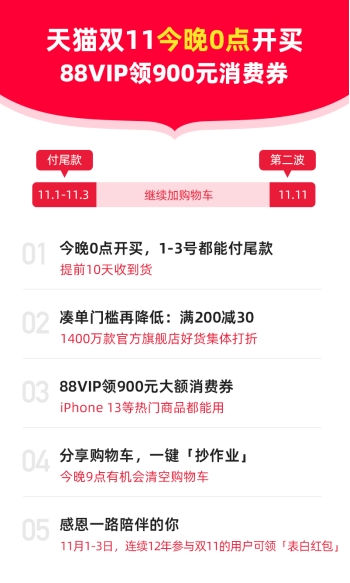 天貓雙11今晚0點(diǎn)開買:88VIP買iPhone 13省600!