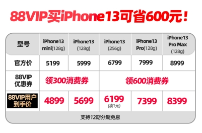 10月20日開始預(yù)售以來,消費(fèi)者在種草機(jī)、商家直播間、各大攻略文檔里瘋狂“抄作業(yè)”。iPhone 13或?qū)⒊蔀榻裢碣徫镘嚴(yán)镒顡屖值纳唐贰km然新品發(fā)布才一個(gè)多月,但iPhone 13全系列就已經(jīng)可以使用88VIP消費(fèi)券,最高省600元!