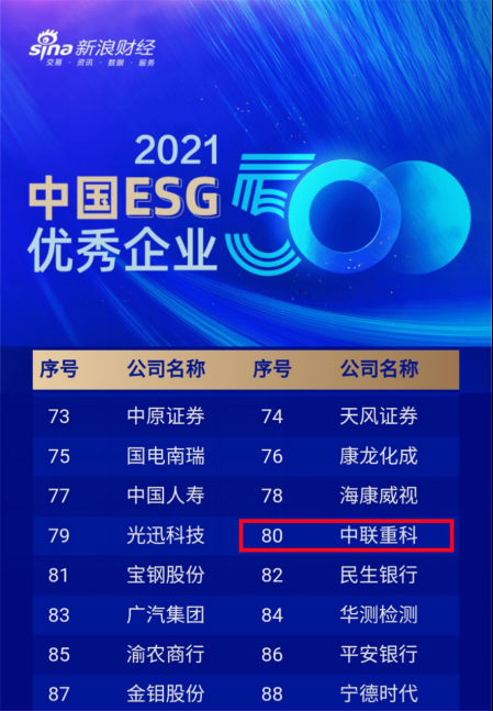 △中聯重科位列“中國ESG優秀企業500強”第80位