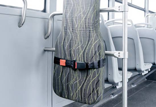 另外,宇通無障礙公交車還在后門處設(shè)計(jì)了一塊特殊區(qū)域,這里的兩個(gè)座椅平時(shí)是折疊起來的,如果乘客有需要,壓下來就能坐下。而當(dāng)有殘疾人上車時(shí),這里就能供殘疾人停放輪椅,還有安全帶可以用來固定,而且輪椅背對的是一塊軟擋,即使是在遇到一些緊急剎車的情況下,這塊軟擋板的緩沖效果,可以在很大程度上避免這個(gè)位置的乘客受到傷害。