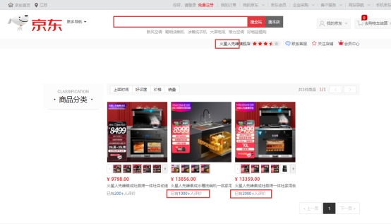 而更令人咋舌的是,在該店鋪熱銷的兩款標(biāo)價分別為9399元、12999元的集成灶產(chǎn)品下方,分別有2000+、1000+的消費評論,評論中更是多次出現(xiàn)“火星人集成灶就是好”“火星人集成灶是很不錯的品牌”等字眼。(見圖二、三)這些帶有明顯誘導(dǎo)性的評論,不禁讓人生疑:這是真實消費后的由衷贊美,還是商家通過水軍給店鋪造勢?如果上述評論為消費者在購買產(chǎn)品之后的真實評論,這些消費者則屬于被“火星人先峰”店鋪的宣傳誤導(dǎo)了。
