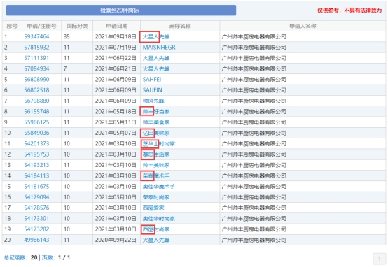 值得注意的是,廣州帥豐廚房電器有限公司與上述企業(yè)均無任何關(guān)聯(lián),這是否意味著周新強名下的這兩家企業(yè)其實是專業(yè)傍各大品牌并進(jìn)行“擦邊產(chǎn)品”銷售的公司?