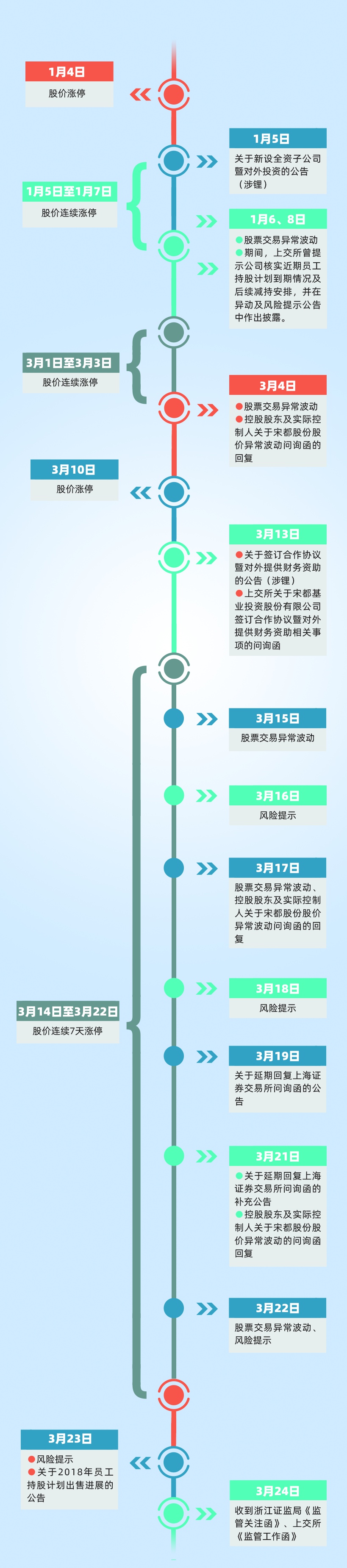 3月14日至22日,宋都股份股價連續7個交易日漲停,參與其中的投資者情緒高昂。期間,上交所曾對宋都股份進行問詢,要求公司自查實控人及全體董監高后續減持安排情況,核實公司董監高、實控人近期股票交易情況。