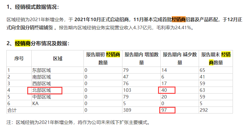 根據三只松鼠的財報,中度分銷相較于輕度分銷最根本的區別,在于突出以區域經銷商模式為核心。公司在2021年年報中披露,區域經銷于2021年10月正式啟動招商,同年12月正式向全國分銷終端鋪貨,三個月就實現了4.37億元營收。