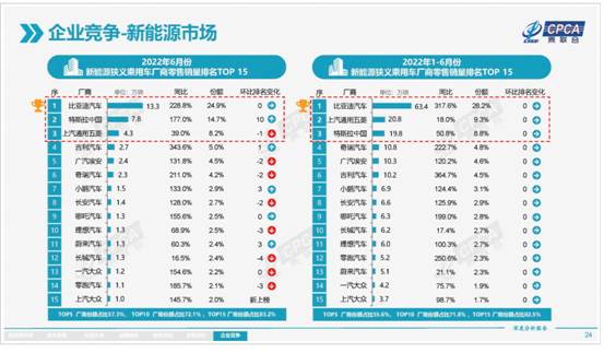根據(jù)乘用車(chē)市場(chǎng)信息聯(lián)席會(huì)數(shù)據(jù),上半年,比亞迪市場(chǎng)占有率高達(dá)28.2%,排名居新能源廠商第一,第二名占比不足10%。比亞迪業(yè)績(jī)預(yù)告指出,今年上半年,盡管面對(duì)宏觀經(jīng)濟(jì)下行、疫情散發(fā)、芯片短缺及原材料價(jià)格持續(xù)上漲等諸多不利因素,但新能源汽車(chē)行業(yè)表現(xiàn)一枝獨(dú)秀。