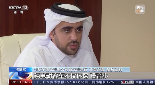這份用心,讓宇通客車贏得了客戶的青睞和信任。“我們的目標是將我們的全部車隊,包括客車和輕型車輛全部替換成節能環保型車輛。在過去幾個月,我們已經把一部分公交大巴替換成了純電動客車,相比燃油大巴,純電動客車不僅環保,噪音也小得多,而且保養維修方便,長期的經濟效益也非常劃算。”卡塔爾國家運輸公司首席運營官艾哈邁德· 奧貝德利(Ahmed Al Obaidly)在接受CCTV采訪時說。