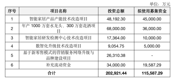招股書顯示,本次募集資金計劃用于智能家居產品產能技術改造項目、年產1000萬套水龍頭和300萬套花灑項目、智能家居研發檢測中心技術改造項目、數智化升級技術改造項目、基于新零售模式的營銷服務網絡升級與品牌建設項目項目、補充流動資金。上述全部項目計劃投資總額約為20.29億元,其中公司擬使用募集資金約11.56億元。箭牌家居正通過加大研發制造能力方面的投入,夯實企業綜合實力,促進企業成長。