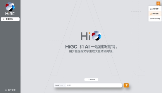 作為一個(gè)營(yíng)銷創(chuàng)意協(xié)作工具,HiGC實(shí)現(xiàn)了多源一站式整合,不但接入了ChatGPT-4,更整合了Midjourney V5,同步實(shí)施以Stable Diffusion為基礎(chǔ)的開源創(chuàng)圖模型的私有化部署,全面整合優(yōu)化了AIGC工作流,全面滿足客戶全鏈路、全場(chǎng)景、全工作流的概念研發(fā)、數(shù)據(jù)挖掘、策略發(fā)想、方案策劃,內(nèi)容營(yíng)銷、圖文創(chuàng)意、設(shè)計(jì)協(xié)作、代碼編程乃至視頻制作的全流程需求。