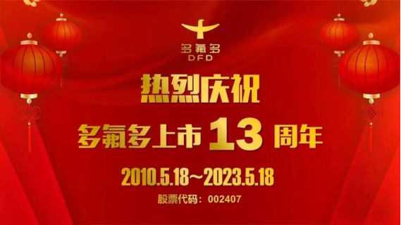 2010年5月18日,多氟多(股票代碼:002407)在深圳證券交易所敲響了上市的鐘聲,成為我國無機氟化工行業最早的上市公司之一。自此,多氟多正式進軍資本市場,公司的融資渠道開始向資本市場擴展。13載春華秋實,13年風雨兼程,多氟多在資本的“加持”下,緊跟時代發展趨勢開拓創新,通過實施高純晶體六氟磷酸鋰、超凈高純電子級氫氟酸以及動力鋰電池等多個項目,實現了蝶變躍升,譜寫出一曲絢麗的華章。