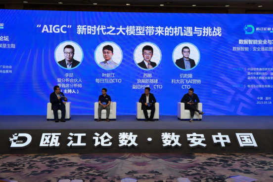在圓桌對話環節,來自愛分析、每日互動、浪潮新基建及科大訊飛的嘉賓一起暢聊“AIGC”新時代之大模型帶來的機遇與挑戰。每日互動CTO葉新江認為,大模型的出現相當于給我們提供了一個全新的大腦,給了我們底層能力。在大模型的框架中可以快速形成符合行業要求的解決方案,使得行業相關的高質量數據成為戰略資產,同時也能極大提升人機交互體驗,從而提高智能化產品的開發效率。