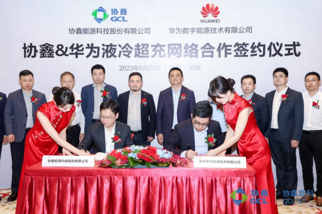 2023年6月29日,協鑫能科與華為數字能源在深圳華為總部簽署協議,雙方就“儲充光云”一體化液冷超充網絡建設達成全方位合作。憑借領先的充換電運營平臺及綠電產業資源優勢,協鑫能科規劃3年內在長三角和大灣區建設運營50個全液冷超充站,攜手華為數字能源打造“儲充光云”一體化液冷超充網絡。協鑫能科移動能源首席運營官張猛與華為數字能源數據中心能源及關鍵供電產品線總裁何波共同見證簽約。