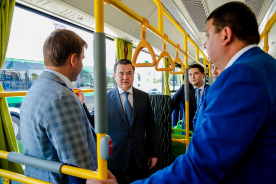 恰逢哈薩克斯坦第25個首都日到來,阿斯塔納城市街頭熱鬧非凡,車輛上線儀式吸引了大批民眾駐足觀禮,給節(jié)日增添了濃厚的喜慶氛圍。阿斯塔納市市長杰恩斯·哈斯姆別克一行視察了首批上線車輛,他對宇通新能源客車的產(chǎn)品品質(zhì)贊不絕口,表示“宇通”是值得信賴的中國品牌。