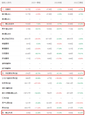 一季報也是如此,由于總營收12.17億元,比去年同期還逆勢上升2.04%,再加上總成本下降了7.45%,從這樣的數據比值來看,這家企業一季報經營業務的利潤比去年同期應該有一個大幅增長。而現在利潤反而下滑22.46%的情況,是跟非經營性收益下降近70%有關。