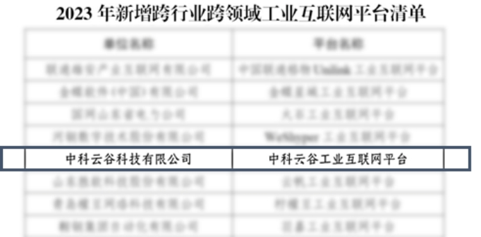 ▲中科云谷工業(yè)互聯(lián)網平臺入選國家級“雙跨”平臺