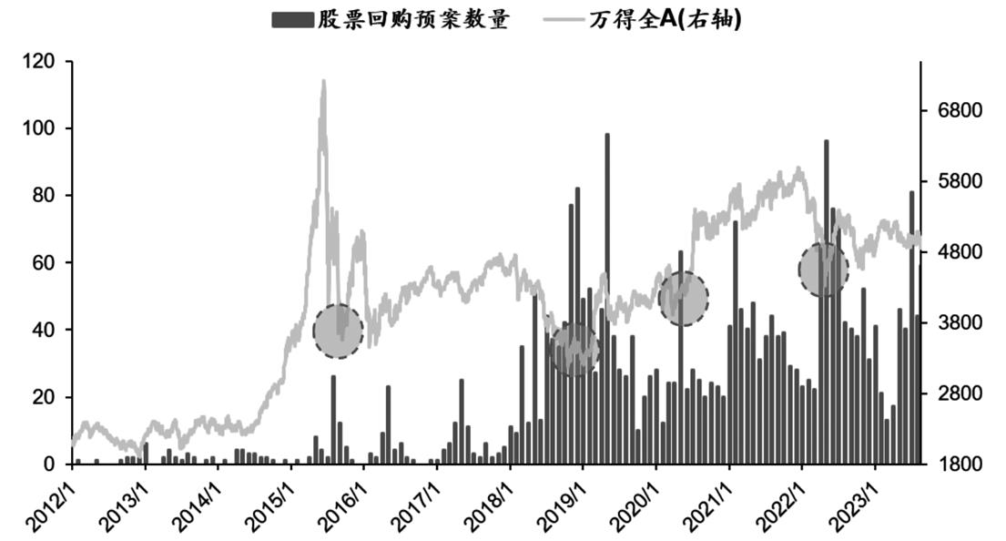 “上市公司回購增持熱潮有利于向市場傳遞積極向好的情緒,彰顯市場對于經濟復蘇的信心。”天風證券首席策略分析師劉晨明分析認為,“股票回購預示上市公司從二級市場購買更多的股票來自行持有。對公司前景的良好預期目前已成為公司回購增持的原因之一,并起到不斷向市場釋放積極信號的作用,增強投資者信心,推動資本市場的活躍化。此外,大規模的回購作為一種市值管理行為,通過向二級市場釋放積極信號而起到了一定穩定股價、防止公司股價過低而偏離公司實際價值的作用。積極而良性的市值管理行為不僅有助于修復、提升公司自身形象,也有利于保護既有投資者的利益,改善投資者情緒。”