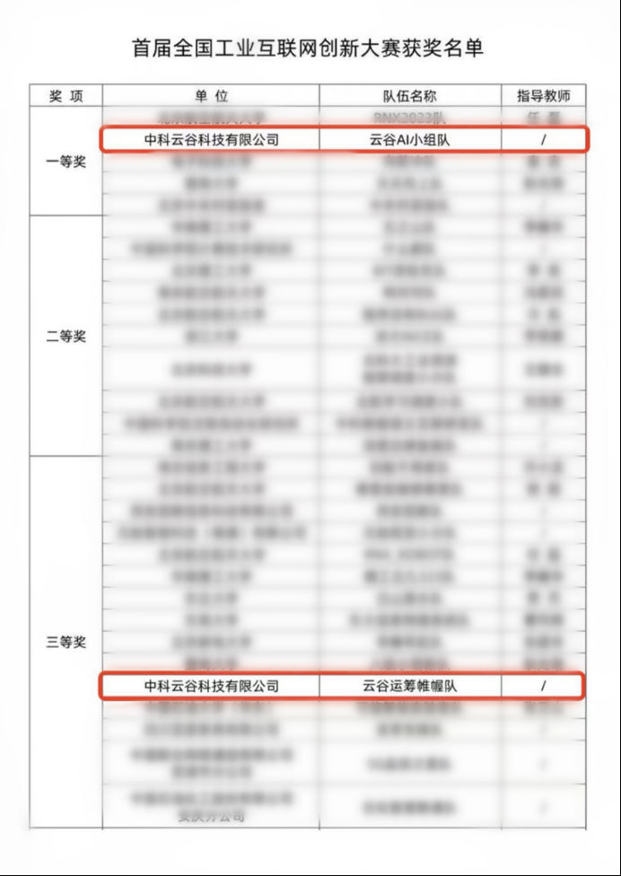 △中科云谷在首屆全國工業互聯網創新大賽斬獲殊榮