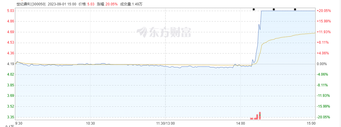 伴隨著上述回復內容,世紀鼎利股價于1日午后14:08迅速沖高,8分鐘后的14:16漲停。