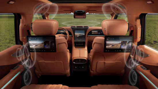 仰望U8豪華版的智能座艙,搭載了比亞迪與高通聯(lián)合定制的4nm 5G芯片,運(yùn)算高速、兼容性強(qiáng),嵌入仰望Link智能網(wǎng)聯(lián)系統(tǒng),擁有完整的應(yīng)用生態(tài)。前排70英寸AR-HUD抬頭顯示、星河曲面中控屏、副駕多媒體屏加上兩塊12.8 英寸后排懸浮式多媒體屏,具備無邊界五屏聯(lián)動(dòng)功能,不受空間限制,支持多屏之間信息交互,為全車駕乘人員帶來更豐富的智能體驗(yàn)。全場景智能語音可支持四音區(qū)獨(dú)立交互,不同音區(qū)之間的語音指令也能產(chǎn)生聯(lián)動(dòng)。用戶還可以通過語音自定義常用場景,充分滿足個(gè)性化使用需求。70英寸AR-HUD將抬頭顯示的內(nèi)容從平面圖像升級(jí)到3D立體圖像,車輛道路信息實(shí)時(shí)投屏,使駕駛者輕松掌握車輛狀態(tài)或地圖等各類信息,眼不離路專注于駕駛。