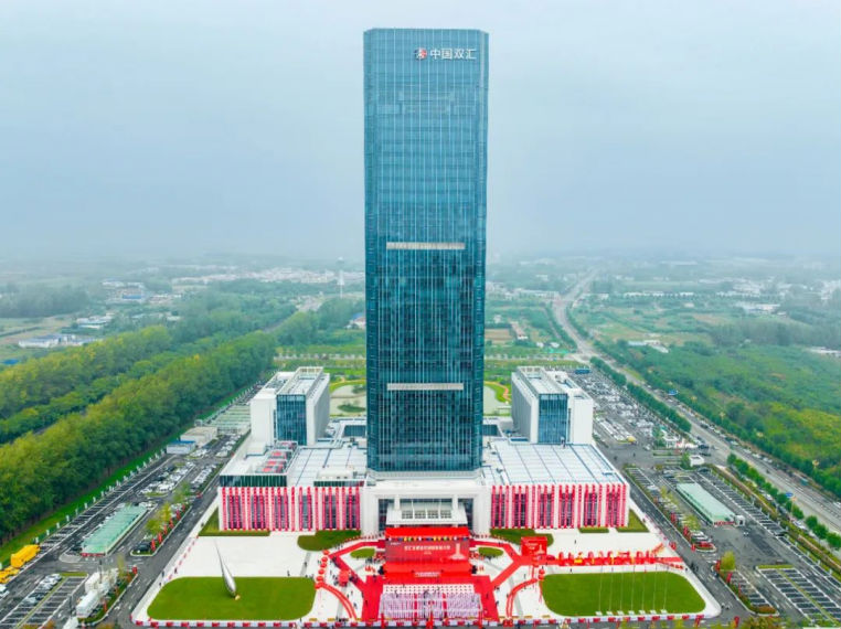 中國雙匯總部新大樓建筑面積11.2萬平方米,建筑高度168米,地上36層,地下3層,是集食品、肉類研發、運營管理、智慧辦公、智能會議、展覽展示為一體的現代化、智能化、數字化綜合辦公大樓。