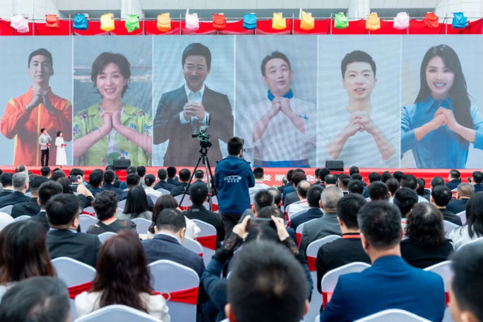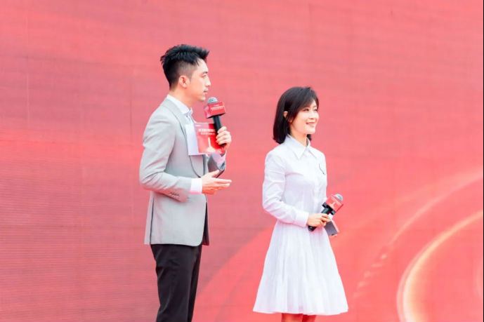 儀式上,著名主持人、雙匯品牌代言人龐曉戈上臺祝福、互動。同時,雙匯代言人吳京、黃磊、劉濤、馬龍、萬茜、武大靖還通過視頻的形式發來祝福。