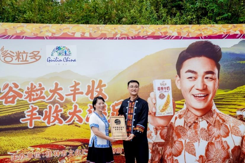 (桂林市文化廣電和旅游局副局長黃燕為谷粒多頒發谷粒豐收年最美“村節”合作地榮譽)
