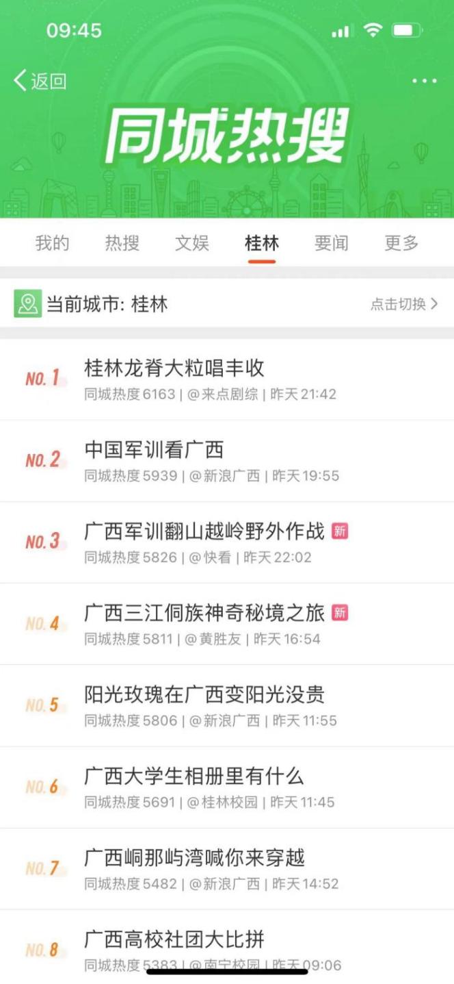 同步,桂林文旅、桂林龍勝、桂林頭條、龍脊梯田景區、桂林廣播電視臺、央廣網廣西頻道、桂林日報等當地權威官媒陣容,均以不同形式對活動進行了報道,一舉助力品牌話題沖上了桂林本地熱搜榜TOP1。