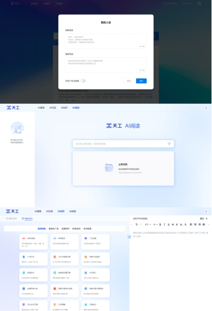 “天工”APP也進行了全面迭代升級,整合了AI搜索、AI閱讀、AI創作等核心功能,覆蓋了工作、學習和生活等多個應用場景。AI搜索功能經過升級,提高了信息獲取的精準度和效率。AI閱讀功能幫助用戶快速了解文章內容、更便捷地查詢文檔信息。AI創作則能滿足學術教育、職場文檔、創意寫作、廣告營銷等不同場景需求。