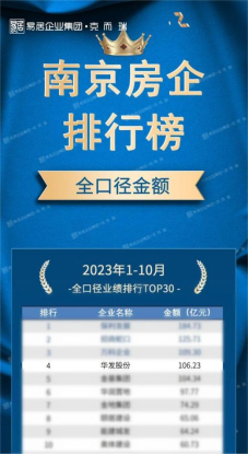 2023年1-10月,華發(fā)股份在南京以106.23億元的銷售額與34.61萬㎡的銷售面積,雙雙位列克而瑞南京房企全口徑銷售排行榜第四位,穩(wěn)居百億元梯隊(duì)。其中“中秋”“國(guó)慶”雙節(jié)期間,華發(fā)更是以約7.75億元(數(shù)據(jù)來源案場(chǎng)統(tǒng)計(jì))的熱銷成績(jī)霸屏南京,實(shí)力出圈。其中“華發(fā)·四季雅筑”熱銷約為1.2億元;“紫京四季”熱銷約為1.1億元;“紫麒府”熱銷約為8000萬元;“萬象天地”熱銷約為6000萬元(數(shù)據(jù)來源案場(chǎng)統(tǒng)計(jì)),多項(xiàng)目屢創(chuàng)現(xiàn)象級(jí)熱度,業(yè)績(jī)遙遙領(lǐng)先。這一成績(jī)不僅彰顯了華發(fā)在南京房地產(chǎn)市場(chǎng)的實(shí)力和影響力,也反映了客戶對(duì)華發(fā)產(chǎn)品和服務(wù)的高度認(rèn)可與信賴。