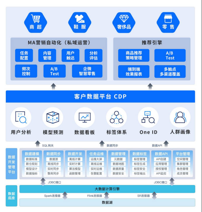 在數字化轉型趨勢下,很多零售企業花費高額預算來布局一系列數據中臺和多種應用產品,但是經常碰到的挑戰是,不但面臨系統協同困難和開發運維成本冗余的尷尬處境,而且由于數據層和應用層打通不充分,由不同供應商提供,導致實施難度大,業務場景落地成本高。同時,市場里的各種產品公司各自為陣,只能聚焦在有限的產品上。往往對于行業化的數據、場景理解不夠充分。