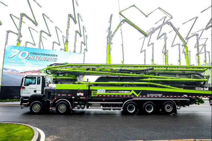 △全球最長臂架新能源泵車中聯重科70米輕混泵車