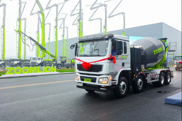現場展示的3款“凌冠”新品,以高性能、高智能、高節能等亮點備受矚目。中聯重科8F 32噸級新能源攪拌車搭載最新第五代拌筒,配備復合懸架,是行業唯一裝8方不超重的電動攪拌車;12F 350 新能源攪拌車,采用新一代電控系統及動能回收策略,每公里耗電僅1.4度,續航超200公里,造就行業節能之最;12F刀片電池攪拌車,采用最安全的刀片電池,配備智聯砼車系統,成就行業安全智能先鋒。