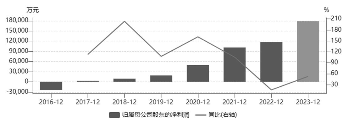 中微公司歸屬于母公司股東的凈利潤及增長率