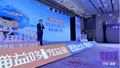 會議伊始,中國小動物醫學大會主席林德貴為本次發布會致辭,并對“匠心出征 雙苗齊奔,貓三聯喵益哆&狂犬苗寵益星新品發布會”表示熱烈祝賀。
